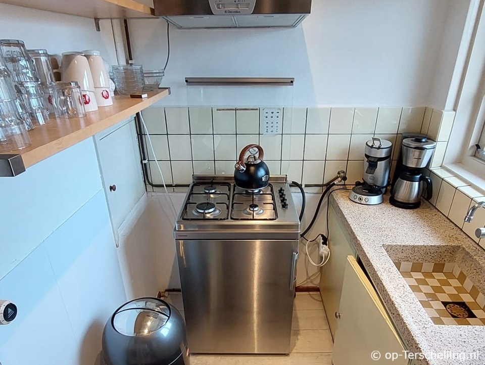 Separate einfache Küche, die Spülmaschine befindet sich im Abstellraum.